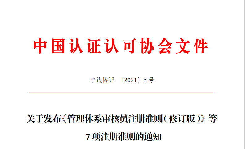 酝酿已久的认证人员注册准则修订版今日发布。新修订的《管理体系审核员注册准则》等7项修订版注册准则,对近年来认证行业普遍反映的补充完善通用知识、调整申请人工作经历和专业工作经历年限要求、统一实习注册级别、优化考试科目、提升人员能力等意见和建议做出积极回应。此次准则修订立足当前高质量发展国家战略及行业发展实际,顺应认证行业发展趋势和规律,为认证行业人才供给提供了相应保障。