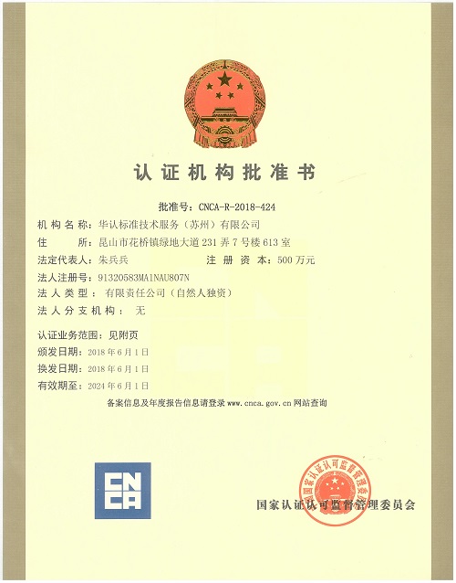 2018年6月1日CCATS技术服务(苏州)有限公司获得了国家认监委的认证机构批准证书,目前批准开展的业务范围为管理体系认证领域质量管理体系、环境管理体系、职业健康安全管理体系的认证资格,CCATS将继续努力,争取早日获得更多资质,为昆山地区企业提供更多优质认证服务。