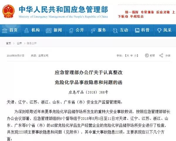 应急管理部曝光危化品存储场所223项事故隐患和问题 40家企业被点名