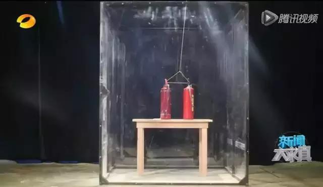 现在灭火器装置放置完毕,只要拉动手中的绳索,灭火器就会“嘭”一声掉在地上。