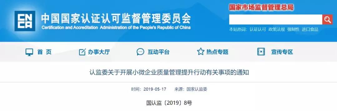 认监委关于开展小微企业质量管理提升行动有关事项的通知