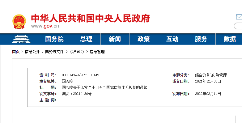 “十四五”国家应急体系规划