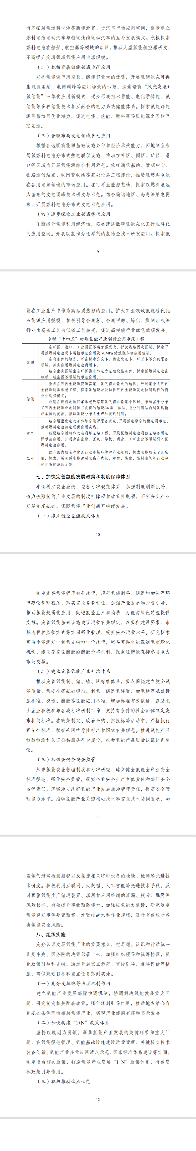4. 建立完善氢能产业标准体系。推动完善氢能制、储、输、用标准体系,重点围绕建立健全氢能质量、氢安全等基础标准,制氢、储运氢装置、加氢站等基础设施标准,交通、储能等氢能应用标准,增加标准有效供给。鼓励龙头企业积极参与各类标准研制工作,支持有条件的社会团体制定发布相关标准。在政策制定、政府采购、招投标等活动中,严格执行强制性标准,积极采用推荐性标准和国家有关规范。
