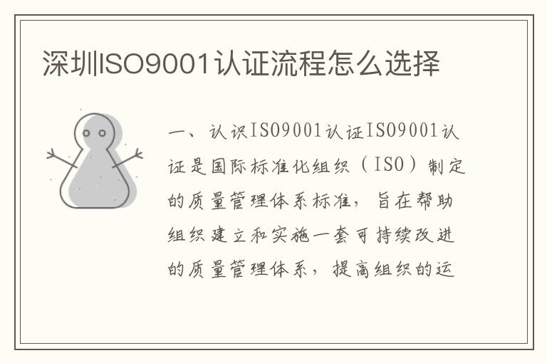 深圳ISO9001认证流程怎么选择