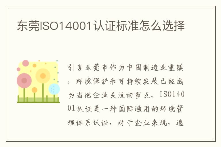 【东莞ISO14001认证标准怎么选择】的内容来源:https://www.ccats.org.cn/iso/news/1037.html
