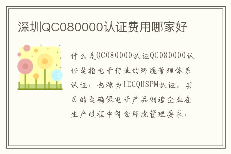 【深圳QC080000认证费用哪家好】的内容来源:https://www.ccats.org.cn/iso/news/1083.html