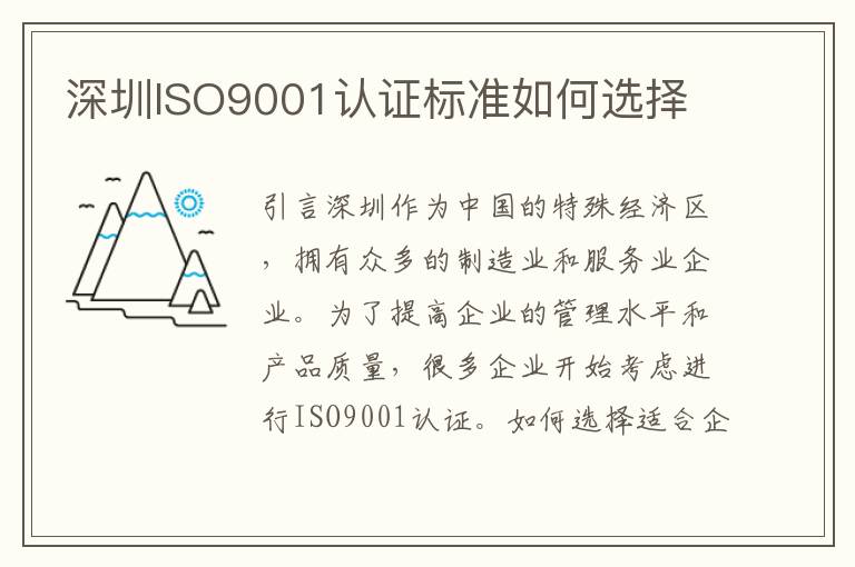 深圳ISO9001认证标准如何选择