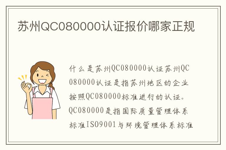 苏州QC080000认证报价哪家正规