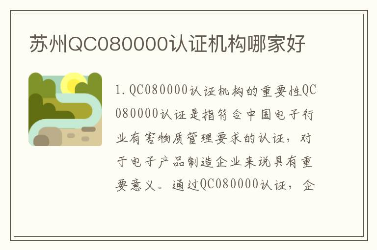 【苏州QC080000认证机构哪家好】的内容来源:https://www.ccats.org.cn/iso/news/1115.html