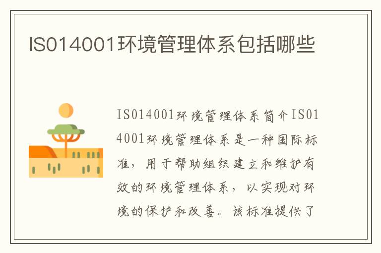 【IS014001环境管理体系包括哪些】的内容来源:https://www.ccats.org.cn/iso/news/1122.html