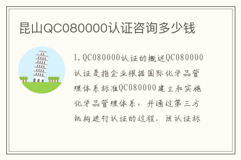 以上是关于昆山QC080000认证咨询费用的一些介绍,希望对您有所帮助。如需了解更多相关信息,请咨询相关专业机构或咨询师。