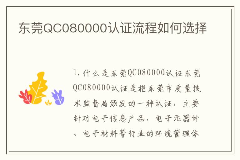 【东莞QC080000认证流程如何选择】的内容来源:https://www.ccats.org.cn/iso/news/692.html