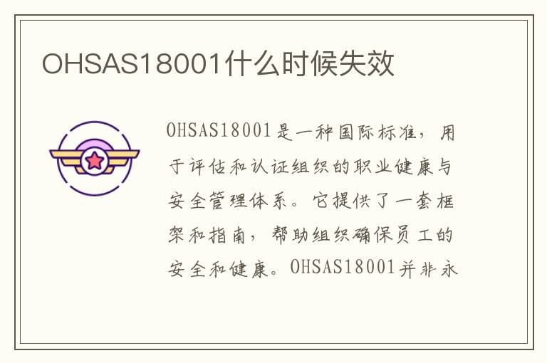 以上就是关于"OHSAS18001什么时候失效"的相关内容介绍,希望对您有所帮助,更多iso认证,敬请关注华认ISO认证