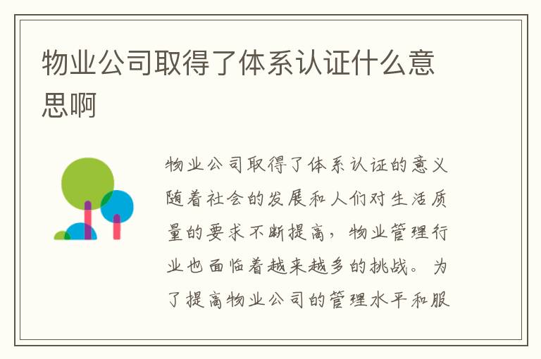 来源:华认ISO认证 发布时间:2023-10-14 08:06:24 关键词:物业公司取得了体系认证什么意思啊