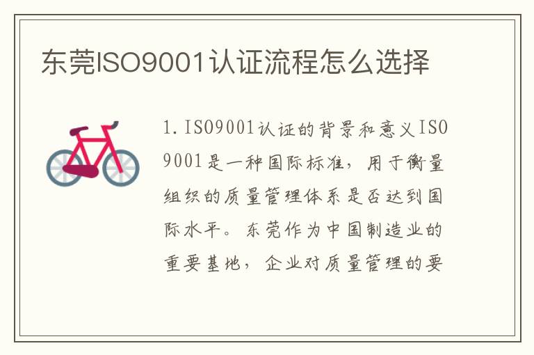 东莞ISO9001认证流程怎么选择