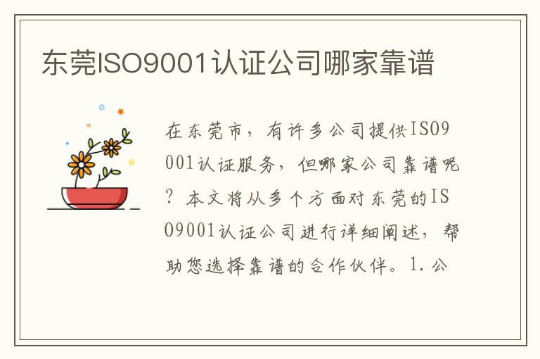 在东莞市,有许多公司提供ISO9001认证服务,但哪家公司靠谱呢?本文将从多个方面对东莞的ISO9001认证公司进行详细阐述,帮助您选择靠谱的合作伙伴。