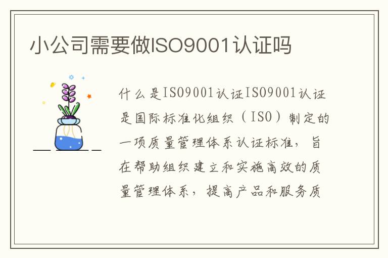 【小公司需要做ISO9001认证吗】的内容来源:https://www.ccats.org.cn/iso/news/782.html