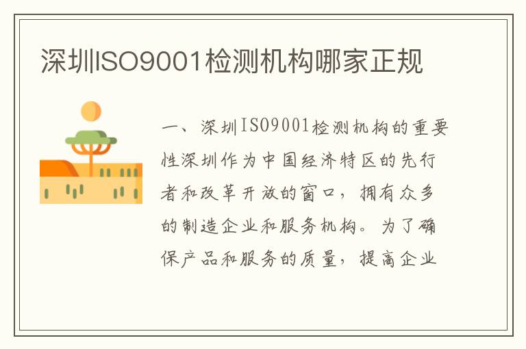 深圳作为中国经济特区的先行者和改革开放的窗口,拥有众多的制造企业和服务机构。为了确保产品和服务的质量,提高企业竞争力,ISO9001质量管理体系的认证成为了企业的必备条件。而深圳ISO9001检测机构的存在和发展,对于企业的质量管理和提升至关重要。