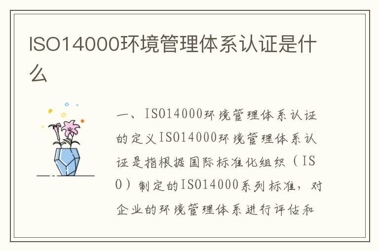 来源:华认ISO认证 发布时间:2024-01-06 08:03:44 关键词:ISO14000环境管理体系认证是什么
