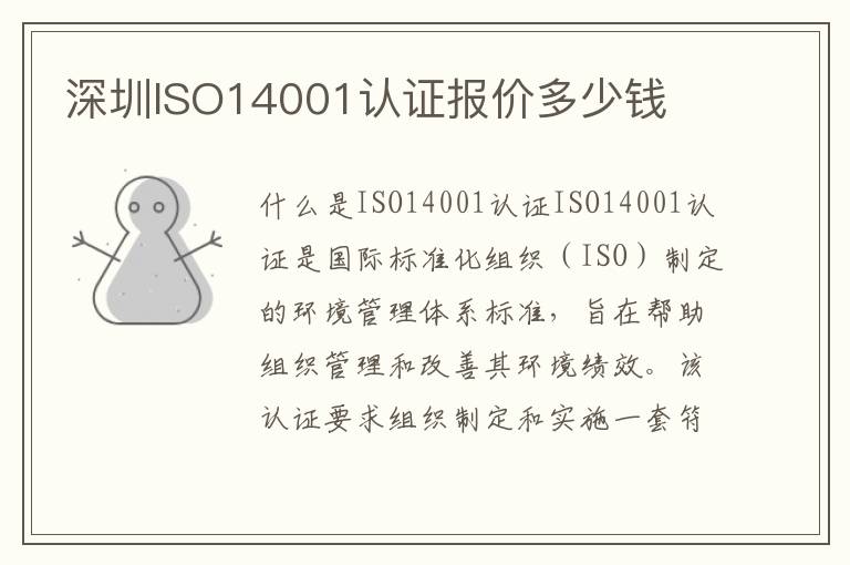 【深圳ISO14001认证报价多少钱】的内容来源:https://www.ccats.org.cn/iso/news/870.html