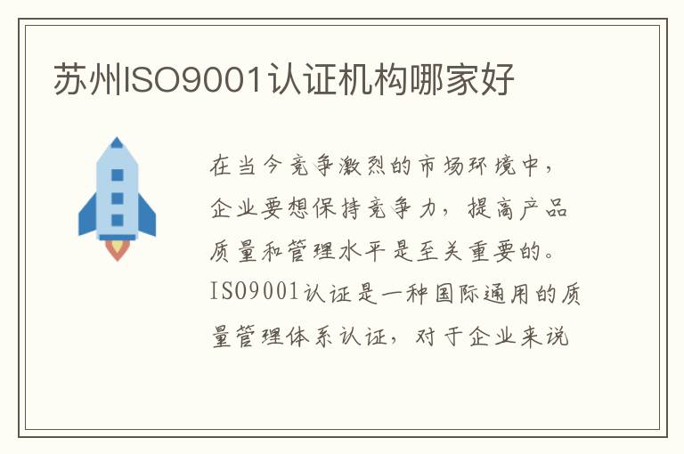 在当今竞争激烈的市场环境中,企业要想保持竞争力,提高产品质量和管理水平是至关重要的。ISO9001认证是一种国际通用的质量管理体系认证,对于企业来说具有重要意义。苏州作为中国经济发展的重要城市,拥有众多的ISO9001认证机构。本文将从多个方面对苏州ISO9001认证机构进行评估和比较,以帮助企业选择适合自己的认证机构。