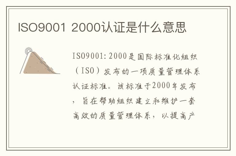 ISO9001 2000认证是什么意思