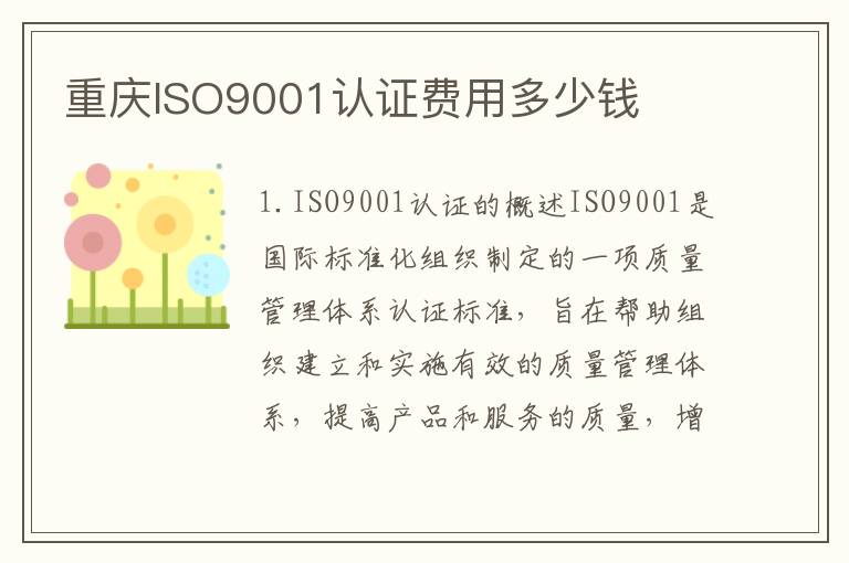 重庆ISO9001认证费用多少钱