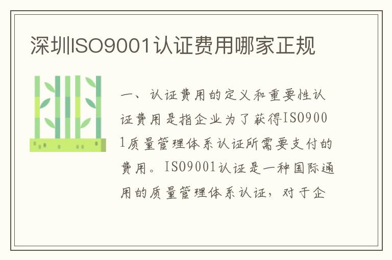 【深圳ISO9001认证费用哪家正规】的内容来源:https://www.ccats.org.cn/iso/news/894.html