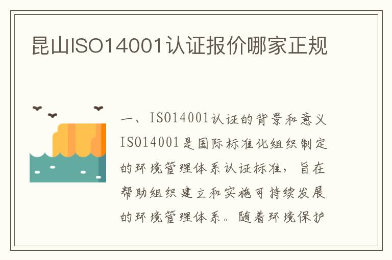 昆山ISO14001认证报价哪家正规