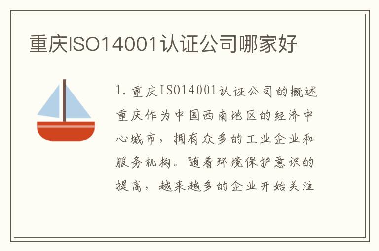 重庆作为中国西南地区的经济中心城市,拥有众多的工业企业和服务机构。随着环境保护意识的提高,越来越多的企业开始关注并主动参与ISO14001环境管理体系认证。本文将介绍重庆地区几家ISO14001认证公司,并对它们的服务质量、专业水平、口碑等方面进行评估,以帮助企业选择合适的认证机构。