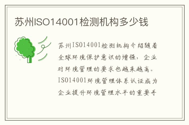 苏州ISO14001检测机构多少钱