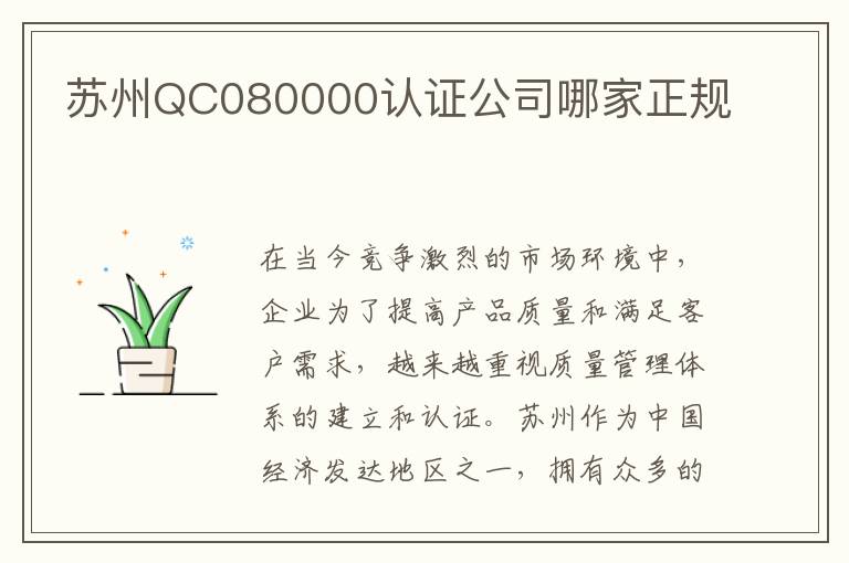 在当今竞争激烈的市场环境中,企业为了提高产品质量和满足客户需求,越来越重视质量管理体系的建立和认证。苏州作为中国经济发达地区之一,拥有众多的QC080000认证公司。在选择合适的认证公司时,企业往往面临困惑。本文将从多个方面介绍苏州的QC080000认证公司,帮助企业找到正规可靠的合作伙伴。