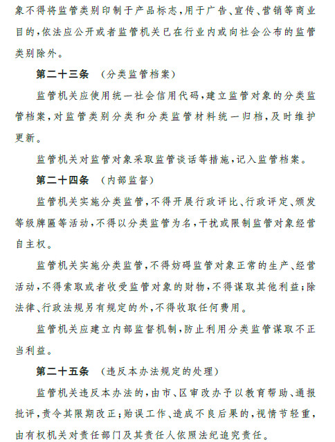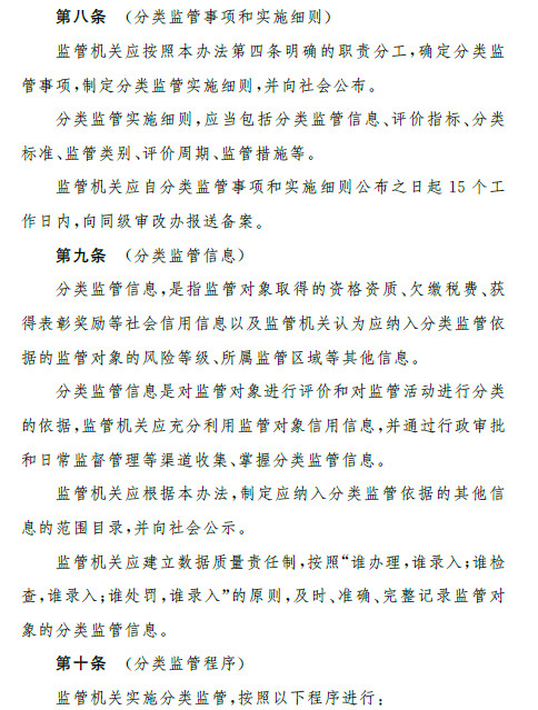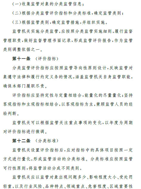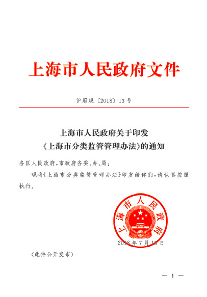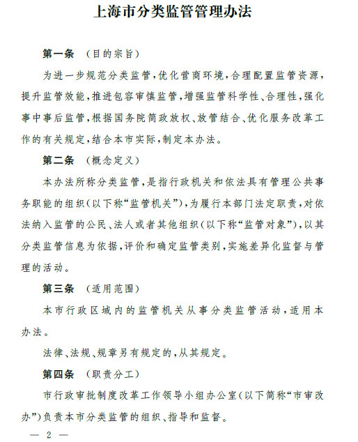 近日,«上海市分类监管管理办法»已正式发布,创设“分类监管评价指标”。分类监管评价指标应按照监管导向性原则设计,反映监管对象遵守法律和履行约定义务的情况,涵盖监管机关自身监管职能,确保本部门履职尽责。