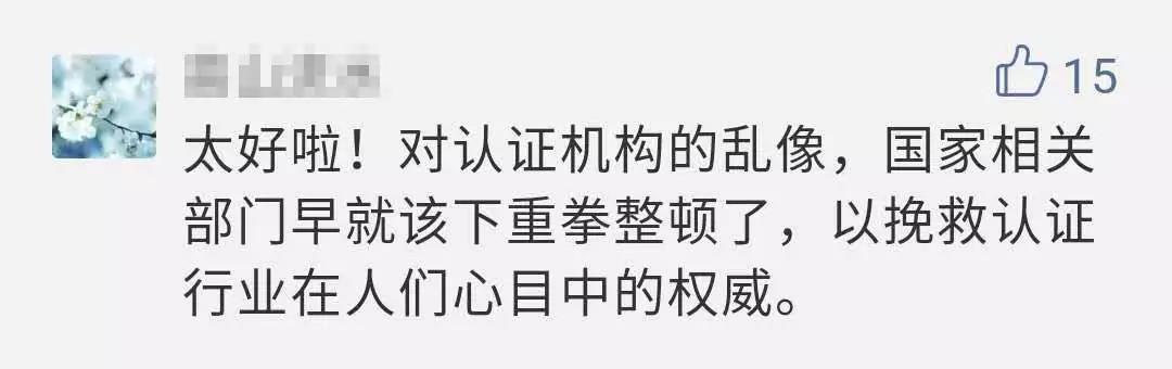 我们希望,通过治理、反思、完善,还原每一张认证证书原本的权威,增强大众和行业信心,坚定不移走“质量强国”之路,这才是行业所需要的“正能量”。
