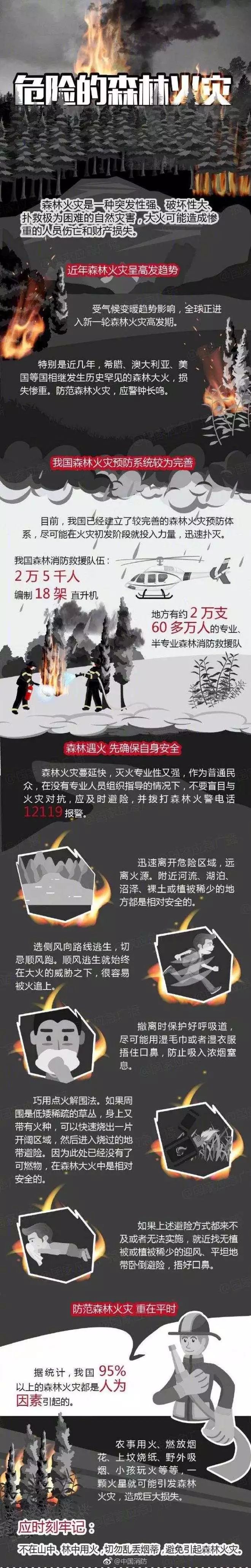 白夜说,在灭火救援时,消防队员要侦察好火场,尽量避开危险地形、危险植被类型,避开危险的气象条件科学扑救;发生险情时切记不要顺风逃生,不要往山上逃生,不要经鞍部逃生等。有条件点火时,可跟进无剩余物的火烧迹地避险。实在没有逃生办法时可用湿毛巾堵住口鼻,包裹好裸露的皮肤迎火冲出火线。