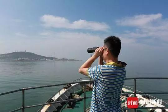 海上工作组成员对排污口进行瞭望观察。摄影 封面新闻记者代睿