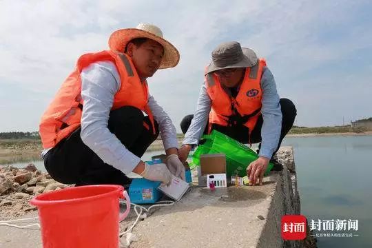 工作组成员对水质进行现场检测。摄影 封面新闻记者 代睿
