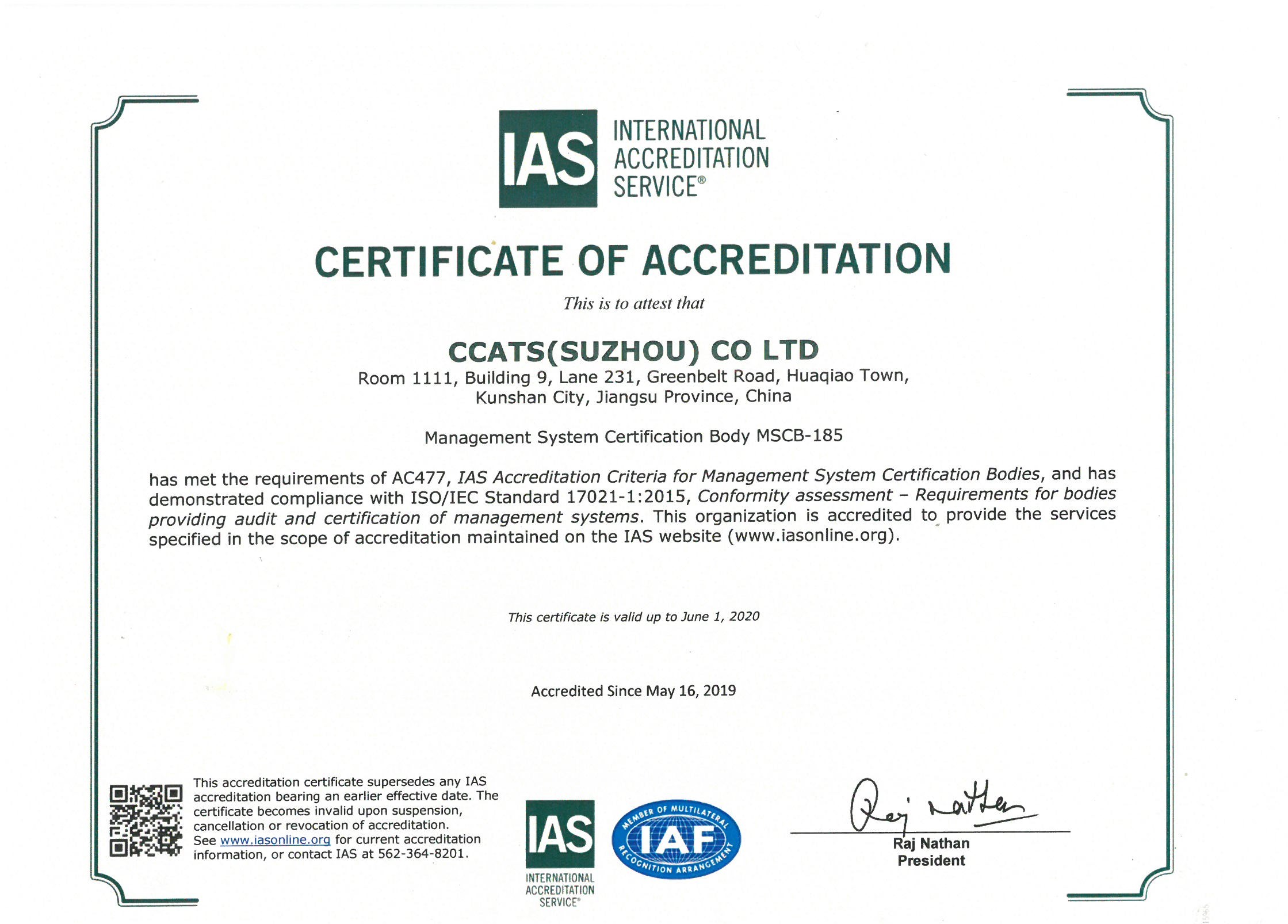 CCATS获得IECQ与IAS颁发的证书 2019年6月1日2025年1月14日 华认标准 2019年5月,CCATS终于获得的IECQ与IAS颁发的证书,今后CCATS可以在获得认可的范围内,为广大客户颁发带有认可标识的ISO9001:2015、ISO14001:2015、ISO45001:2018 、QC080000:2017的认证证书。 ×用微信扫描并分享